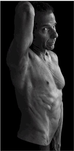 | Statistics when this photo was taken, 10 days before my 63rd birthday: Height: 6'0" Wingspan: 6'1" Weight: 152.6 lbs, which is more than the 148.8lbs from the 2022 shoot. I am also leaner for this one (notice the striations in my left pec). Bodyfat: Unknown, but well below what the Tanita scale says is 5% Waist: 29 Chest: 48 Arms: 15 Quads: 20.25 Max bench press: Unknown, but I do 4 sets of 10 reps with 150 lbs to warm up on chest day Max squat: Unknown, but I do 4 sets of 8 reps of front squats with 90lbs to start Leg Day Cholesterol: In normal range, on low side Testosterone: Above the upper limit of the normal range Last illness: 1971 Last workout missed: Spring of 1977 Training days per week: 6 Type of training: Split routine, heavy on supersets Meals per day: 7 on training days, 6 on rest day Number of eggs eaten per day: Between 7 and 10 Percent of diet that is processed food: 0 Amount of meat, wheat, corn, or soy eaten annually: 0 Number of clot shots received: 0.